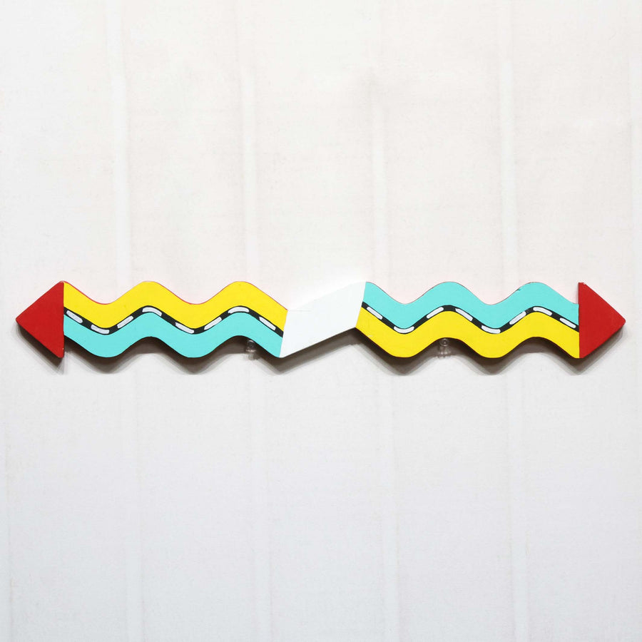Vintage Hopi lightning stick painted in bold colors with hand-painted deer print and bear paw designs. Lightning sticks are traditional ceremonial objects, often used in kachina dances and as symbolic representations of rain, thunder, and power.