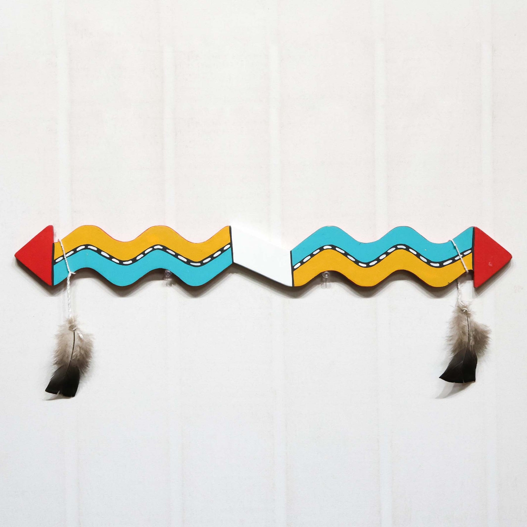 Vintage Hopi lightning stick painted in bold colors with hand-painted deer print and bear paw designs. Both ends are tipped in red and accented with wild turkey feathers. Lightning sticks are traditional ceremonial objects, often used in kachina dances and as symbolic representations of rain, thunder, and power.