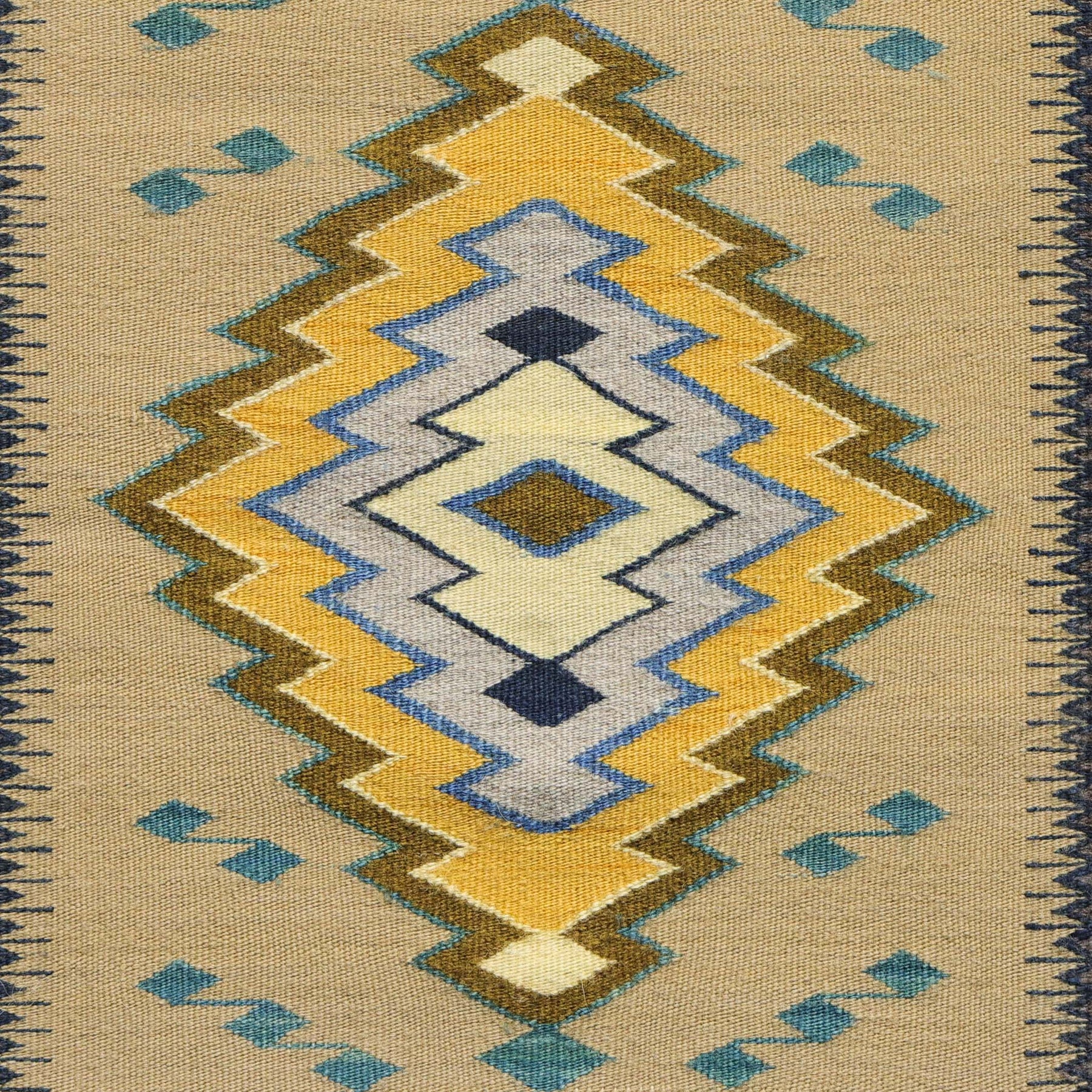 Fine Navajo Weaving in the Burntwater Regional Style featuring Vegetal Dyes including Indigo Blue, Rabbits Brush, Black Walnut Shell, Sage, Lichen, and Navajo Tea.