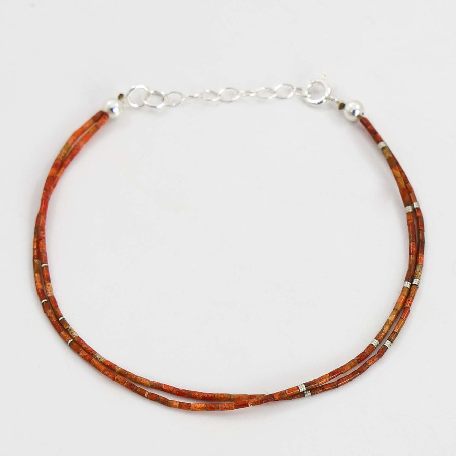 ストーンとメタルビーズの美しいコレクション。各部族は、ナバホ パールからサント ドミンゴヘイシまで、さまざまな種類のビーズを専門としています。ストーンビーズは、原材料を手作業で正方形にカットし、中央にドリルで穴を開けて作られています。一緒につながれた粗い正方形は、回転する石のホイールに対して手で成形されます。その過程で、元の素材の 60 ~ 70% が失われます。メタル ビーズの場合、アーティストはスチール/鉄板の半円形のくぼみに金属のシートを打ち付けて、ビーズの各半分を個別に作成します。 2 つのビーズの半分は、連続した形を作るために繊細にはんだ付けされています。