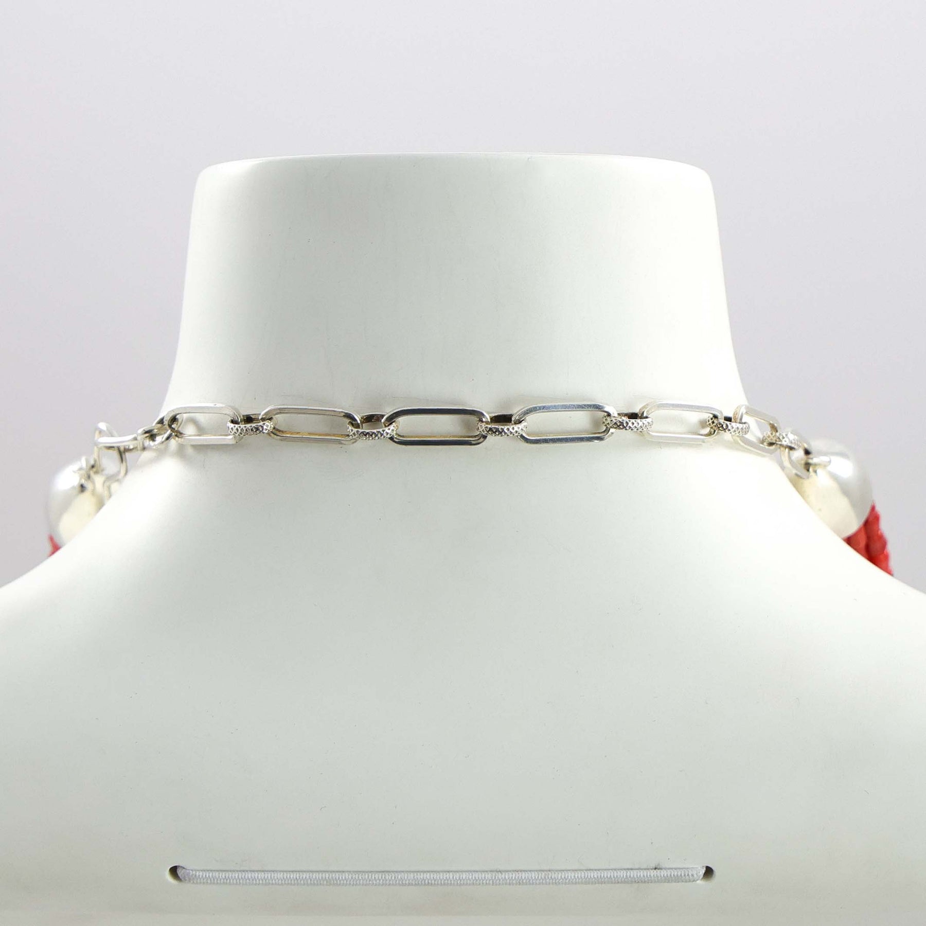 Sixteen-Strand Necklace with Hand Rolled Mediterranean Coral Beads with Sterling Silver Clasp and Cones.