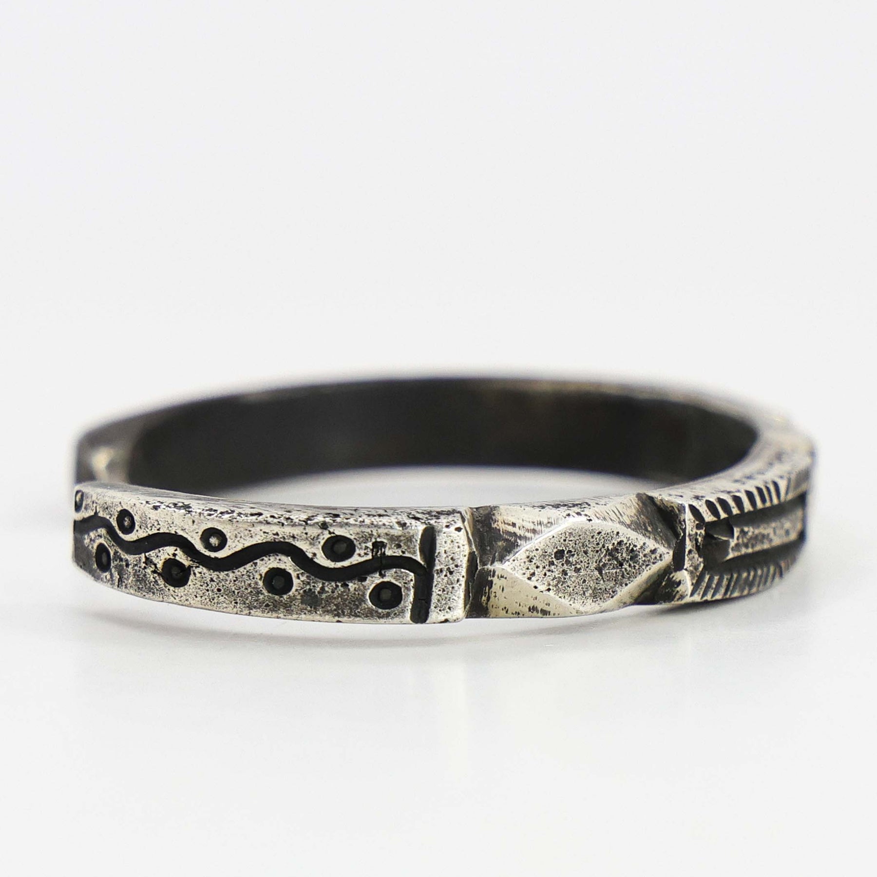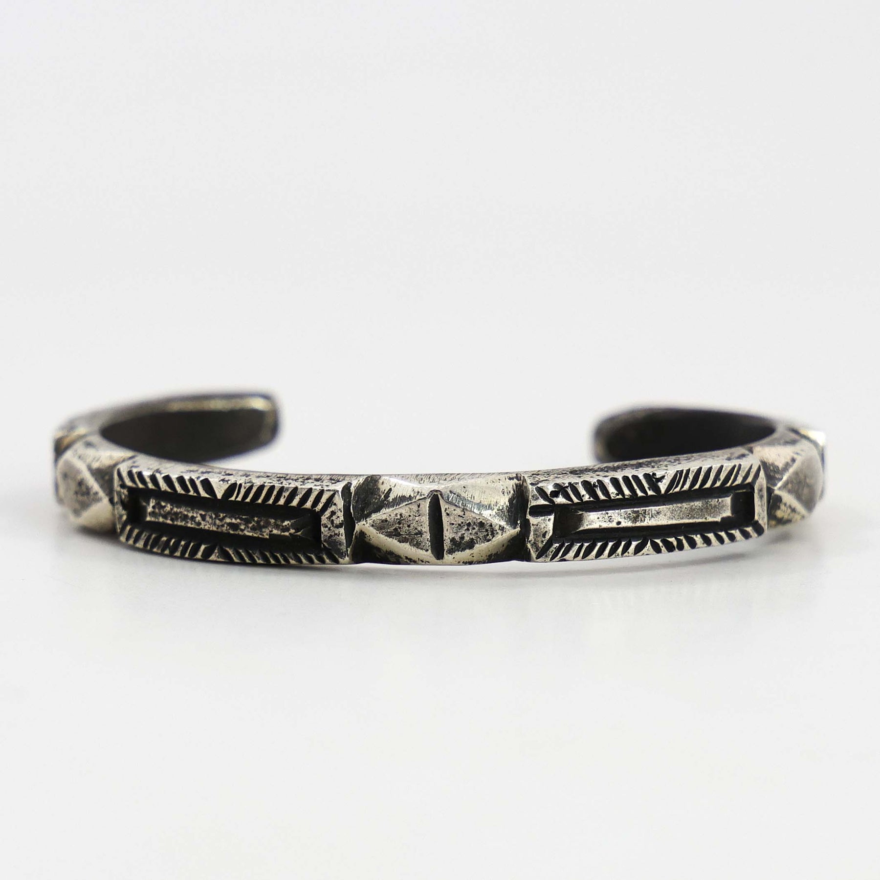 Hand-Forged Coin Silver Cuff Bracelet with Hand-Stamped Designs.