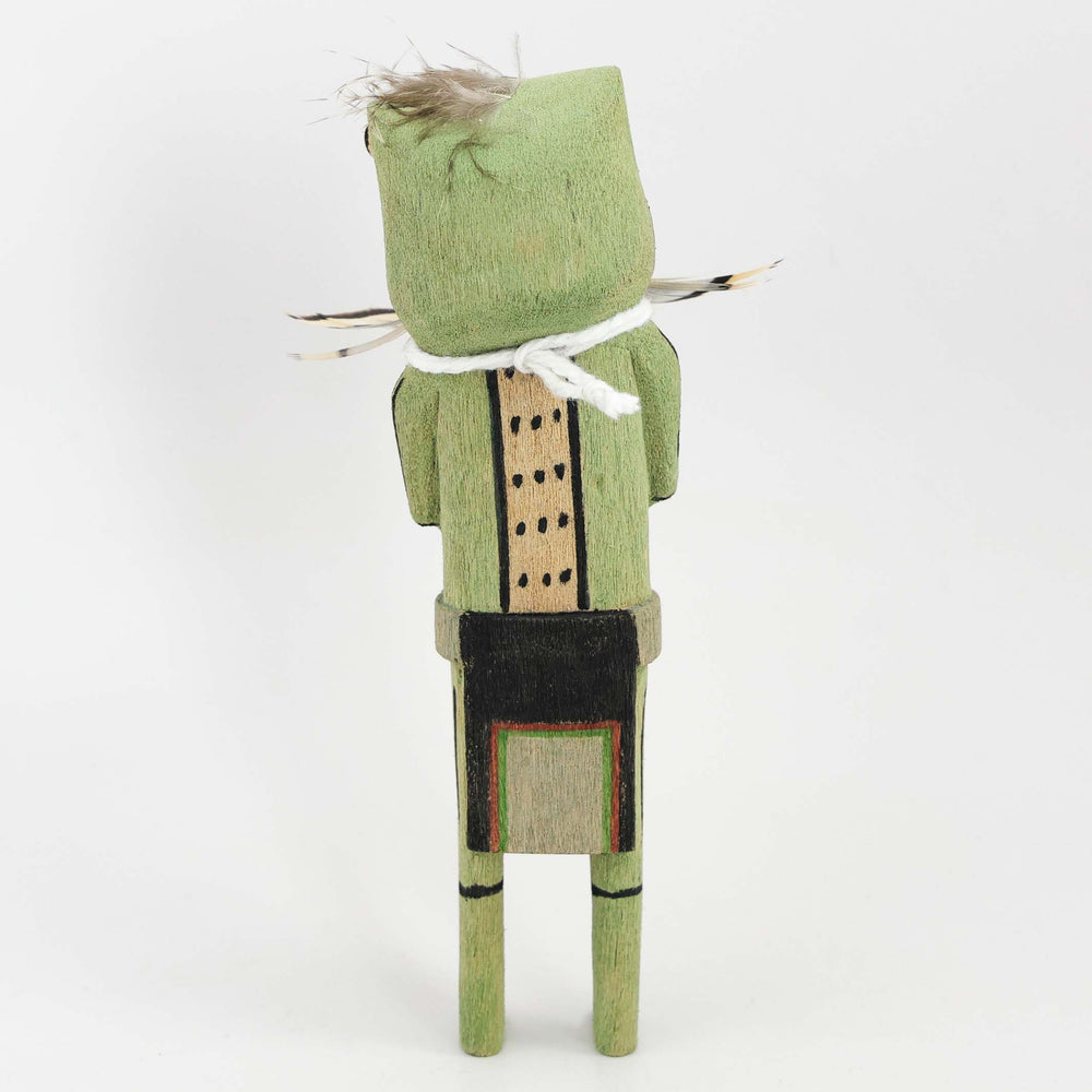 Hand-Carved and Painted Hopi Old-Style Frog (Paqua Taka) Kachina with a Feather Collar. Frog Kachinas are associated with moisture and rainfall, vital for crops and spring renewal.