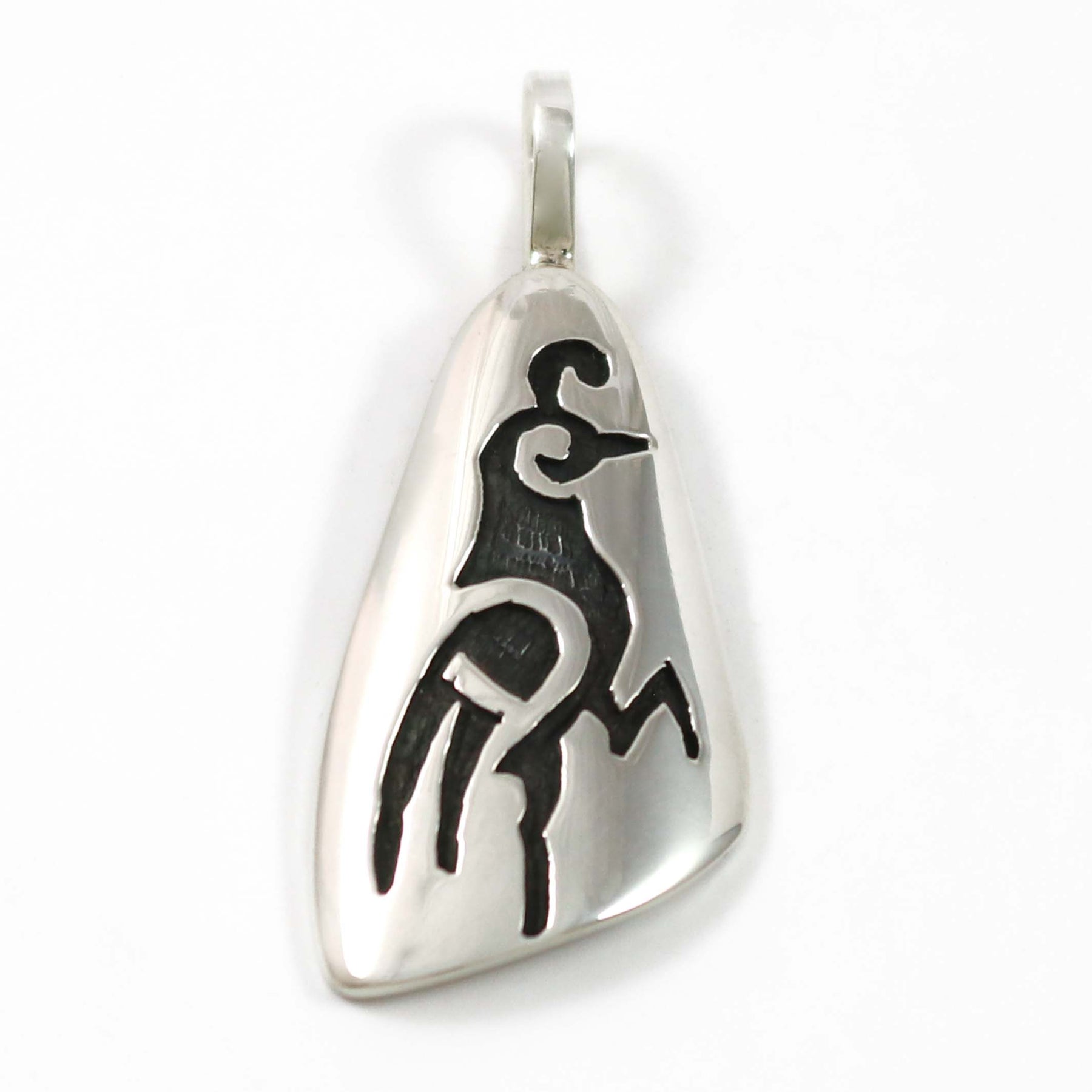 ホピ族のウズラのデザインを重ねたスターリングシルバーのペンダント。