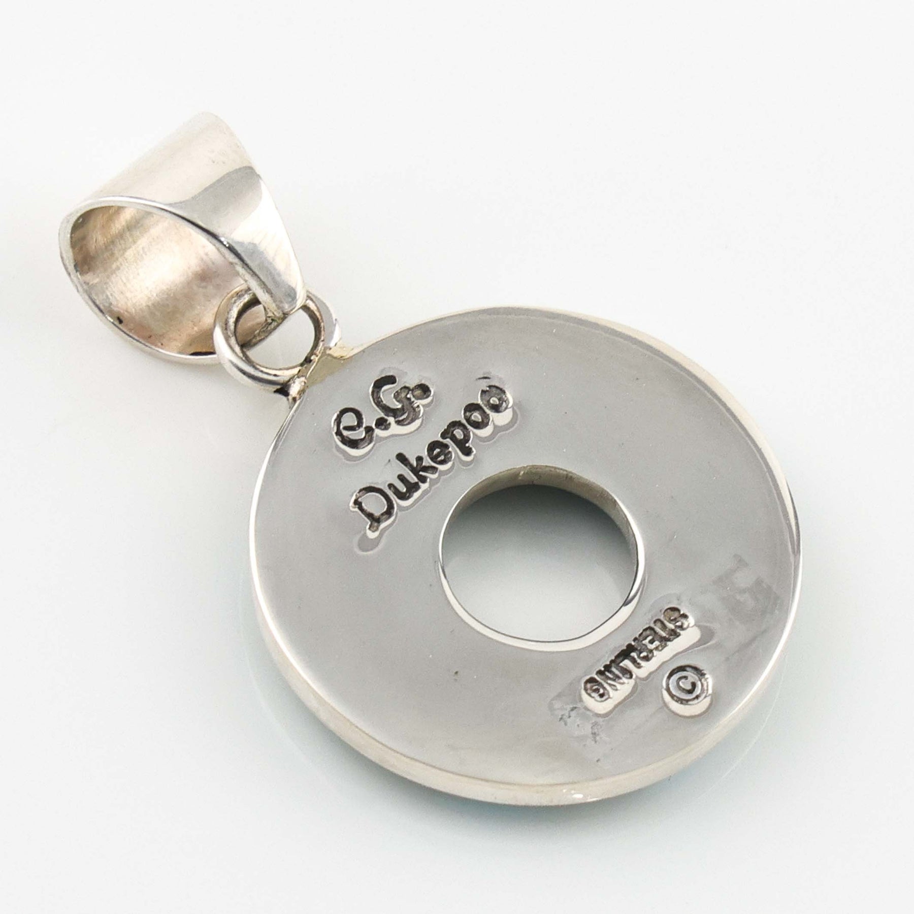 Sterling Silver Life Saver Pendant with Cobble Inlaid Natural Kingman Turquoise from Arizona.