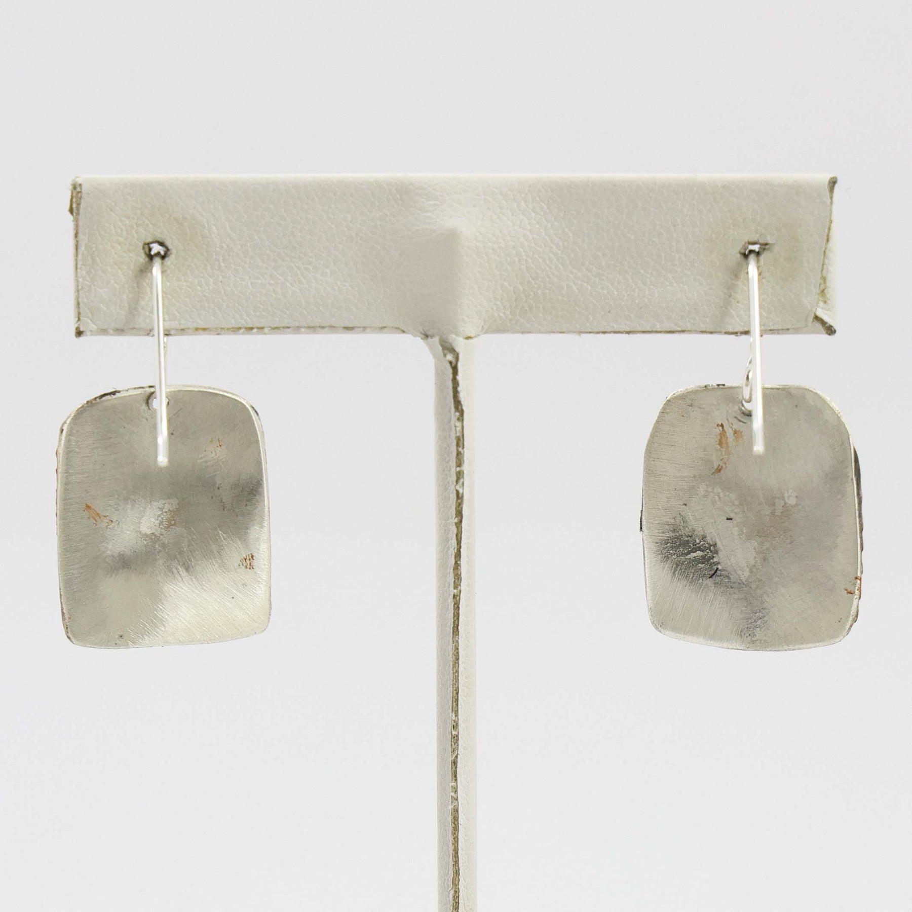 Sterling Silver French Hook Earrings with Mosaic Inlaid Turquoise and Spiny Oyster Shell.