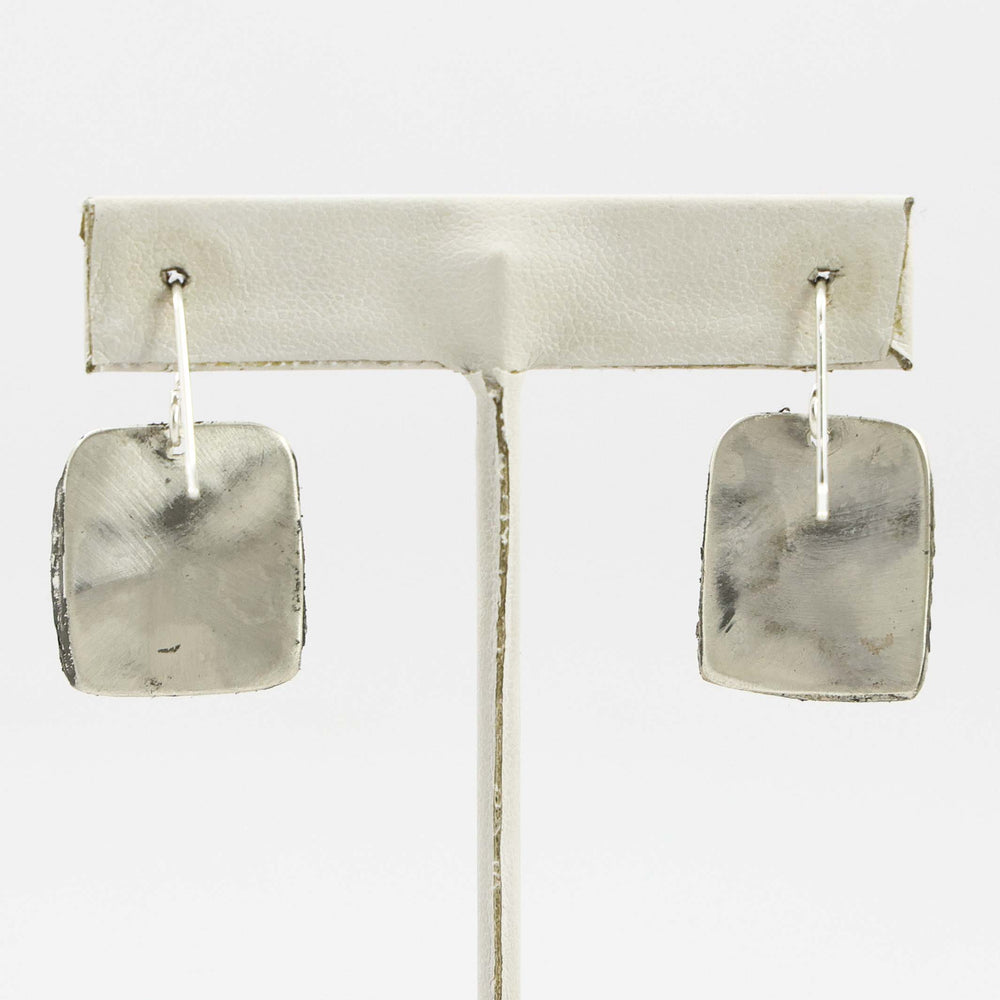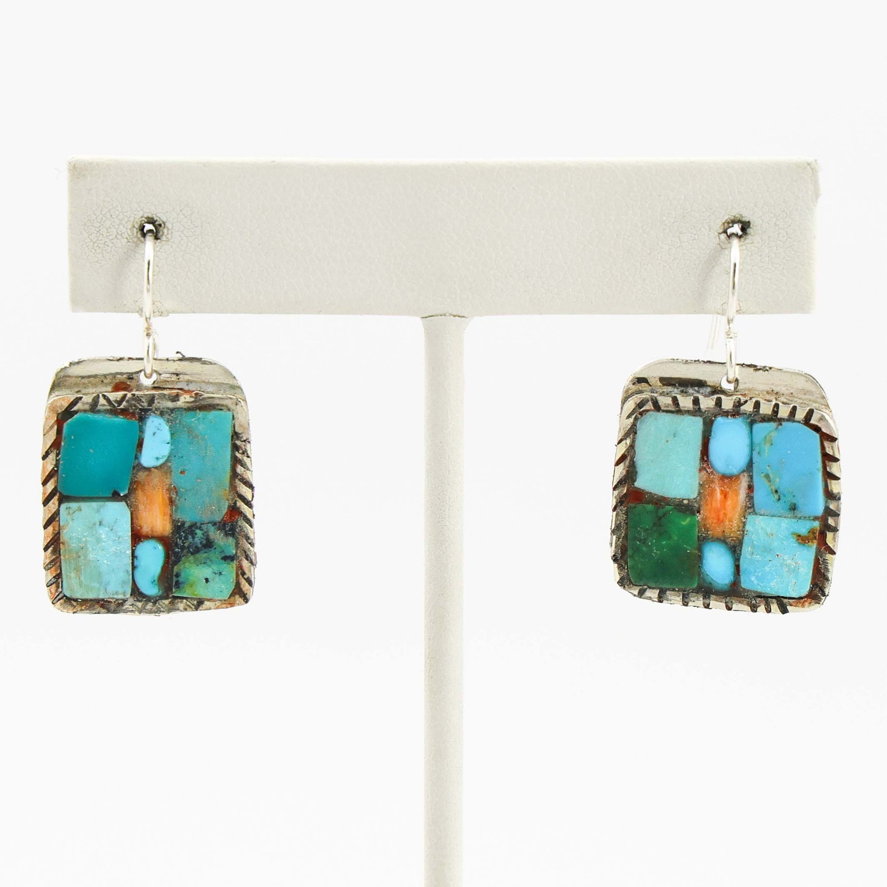 Sterling Silver French Hook Earrings with Mosaic Inlaid Turquoise and Spiny Oyster Shell.