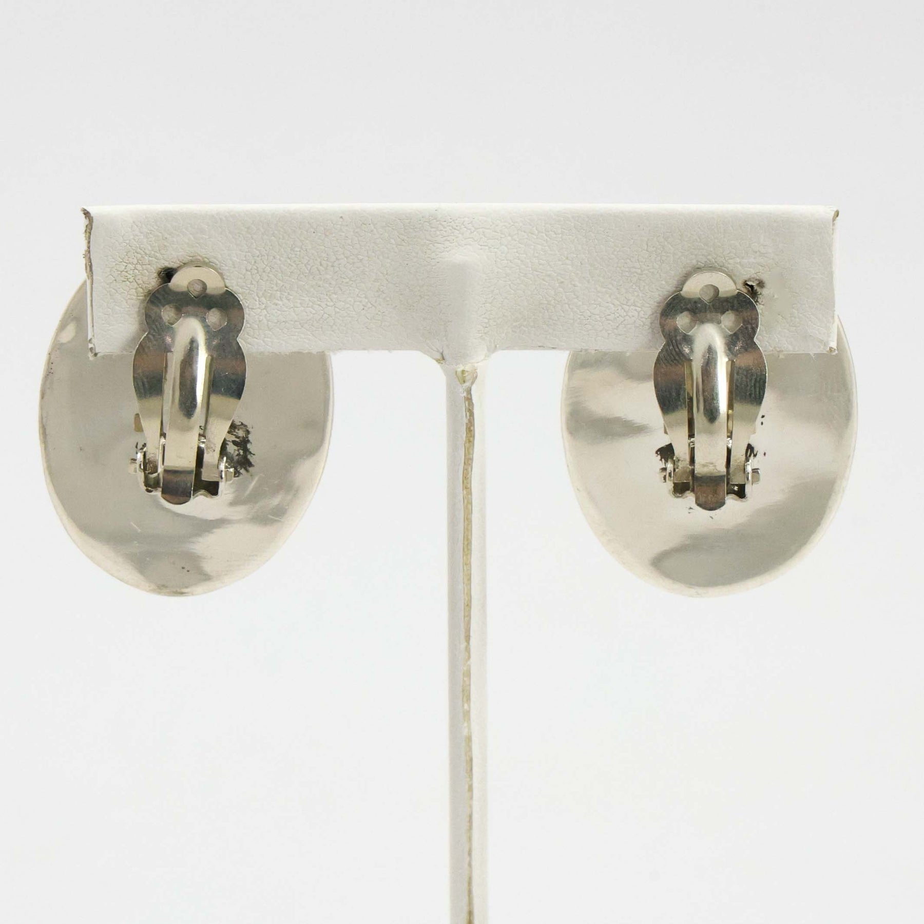 Sterling Silver Clip Earrings with Hand-Stamped Designs and set with Natural Morenci Turquoise from Arizona, by Navajo silversmith, Gene Jackson (d. 2021).