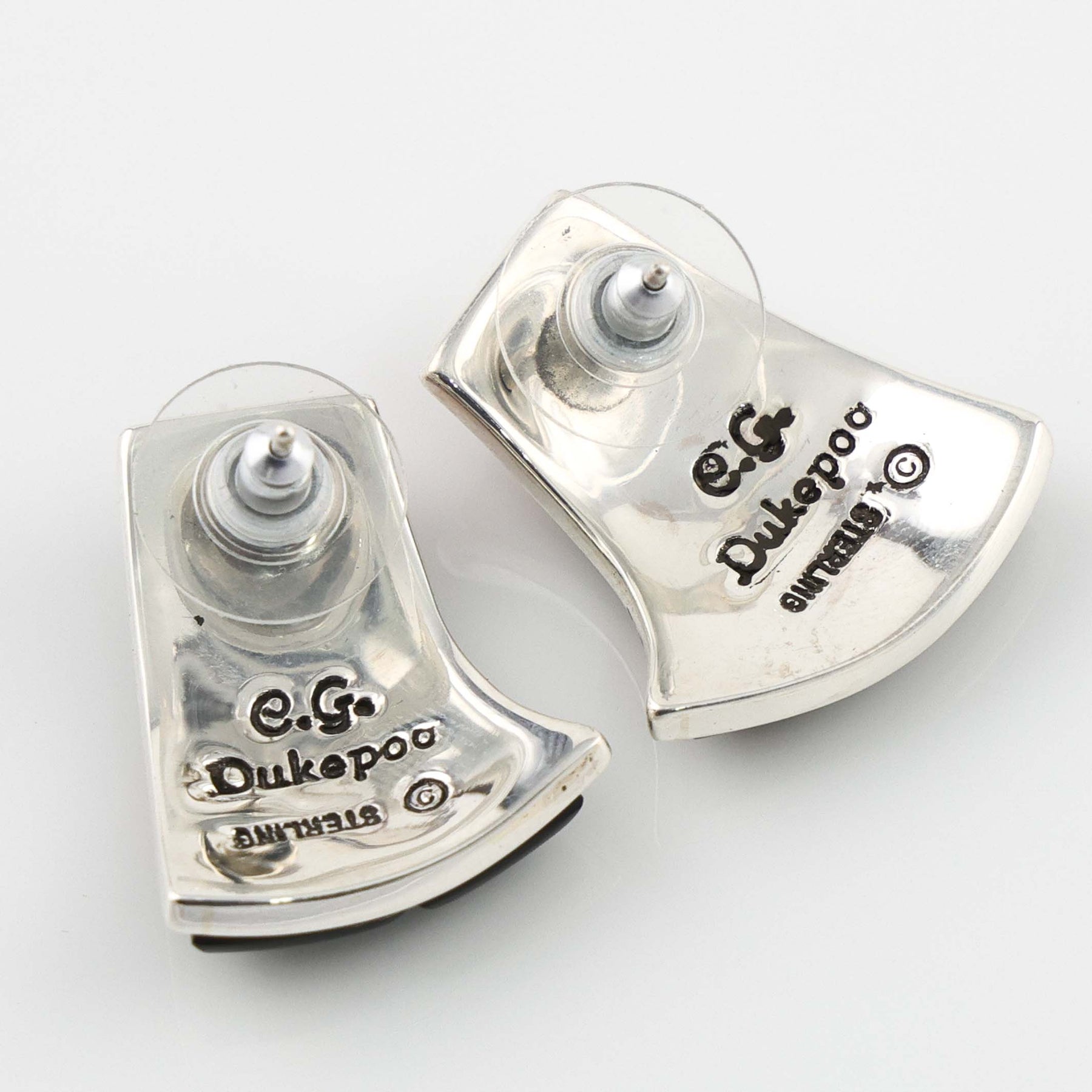 Sterling Silver Post Earrings with Cobble Inlaid Lapis and Rosarita.