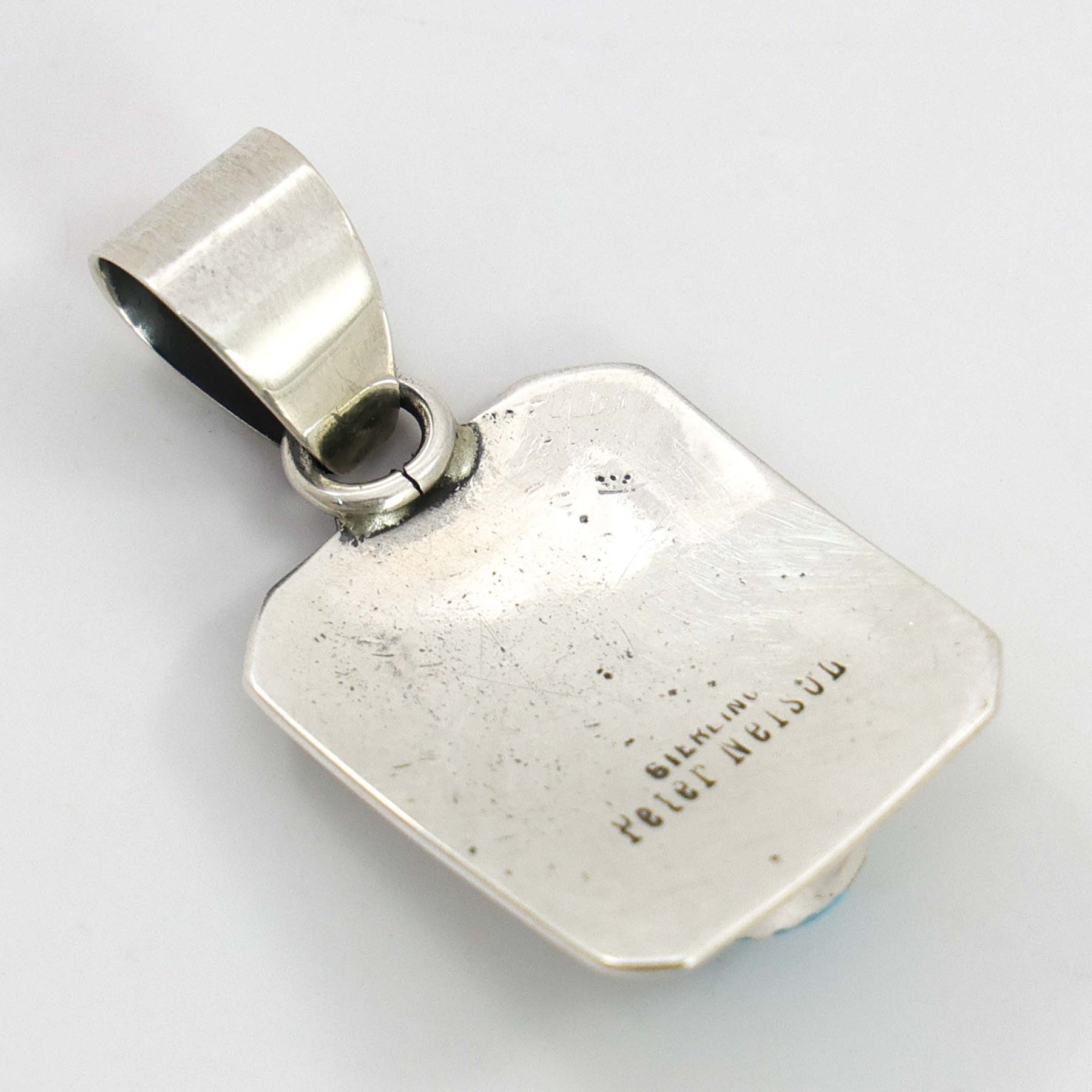 Sterling Silver Pendant with Overlaid Designs and set with Natural Blue Bird Turquoise from Arizona.