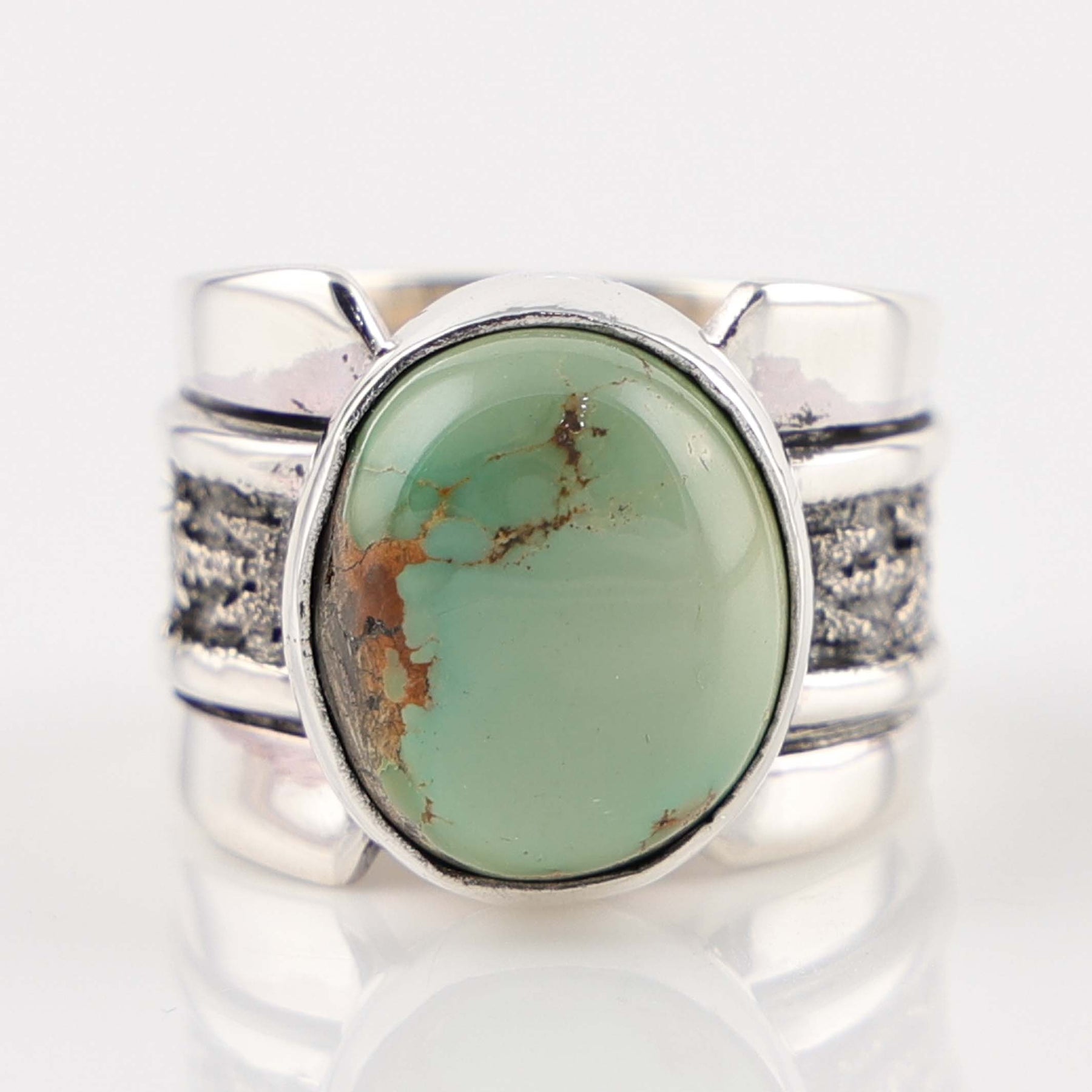 Sterling Silver Ring set with Natural Royston Turquoise from Nevada.
