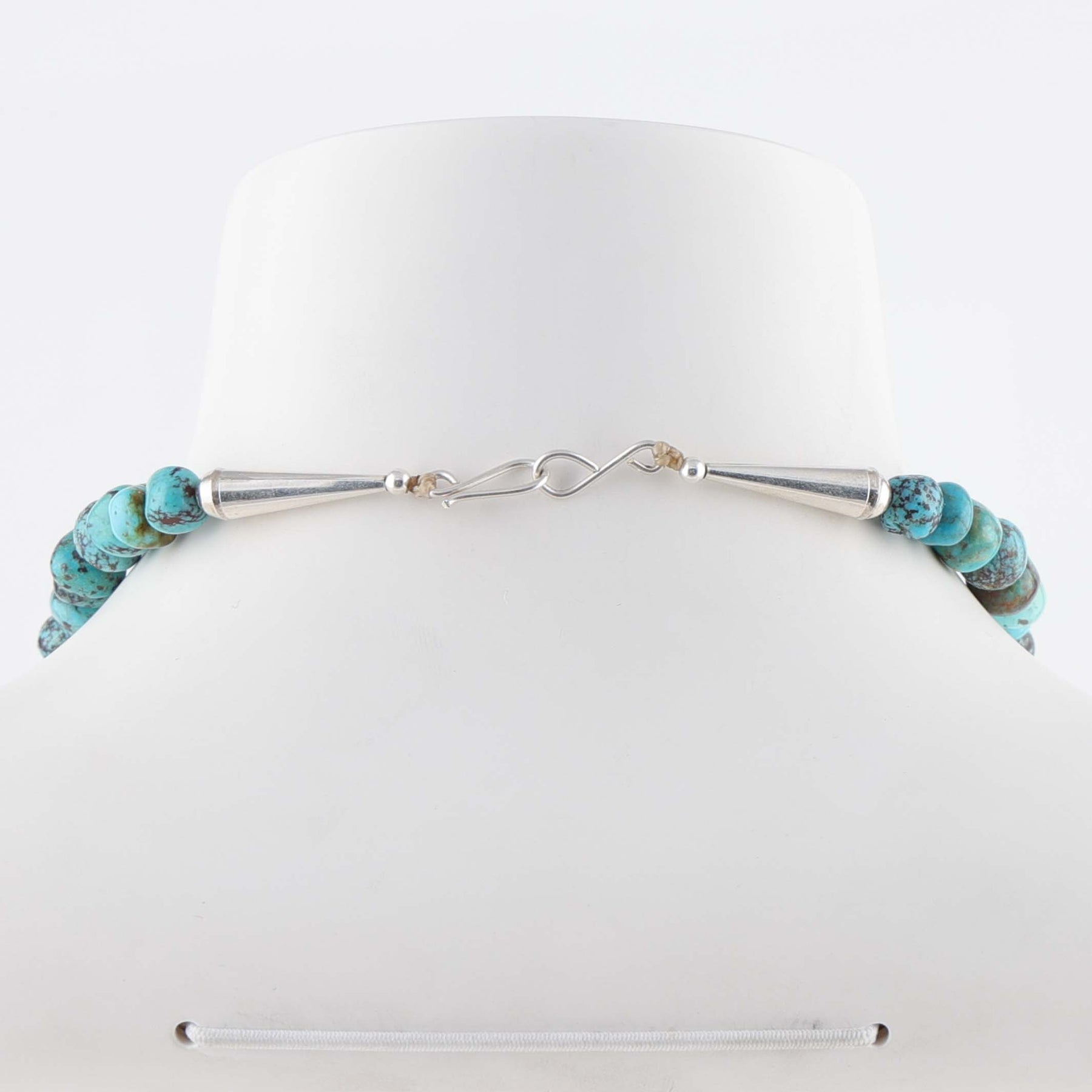 Single Strand Necklace with Stabilized Kingman Turquoise Gumball Beads. The necklace is finished with sterling silver cones and clasp.