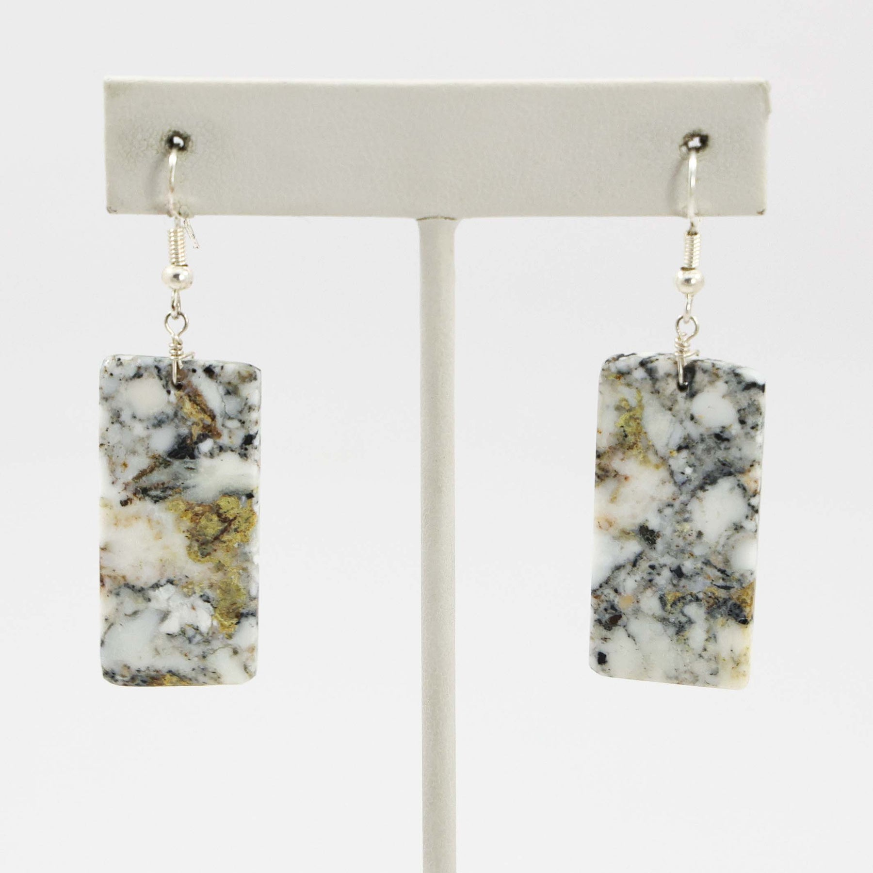 Sterling Silver French Hook Earrings with Slabs of White Buffalo (Howlite).