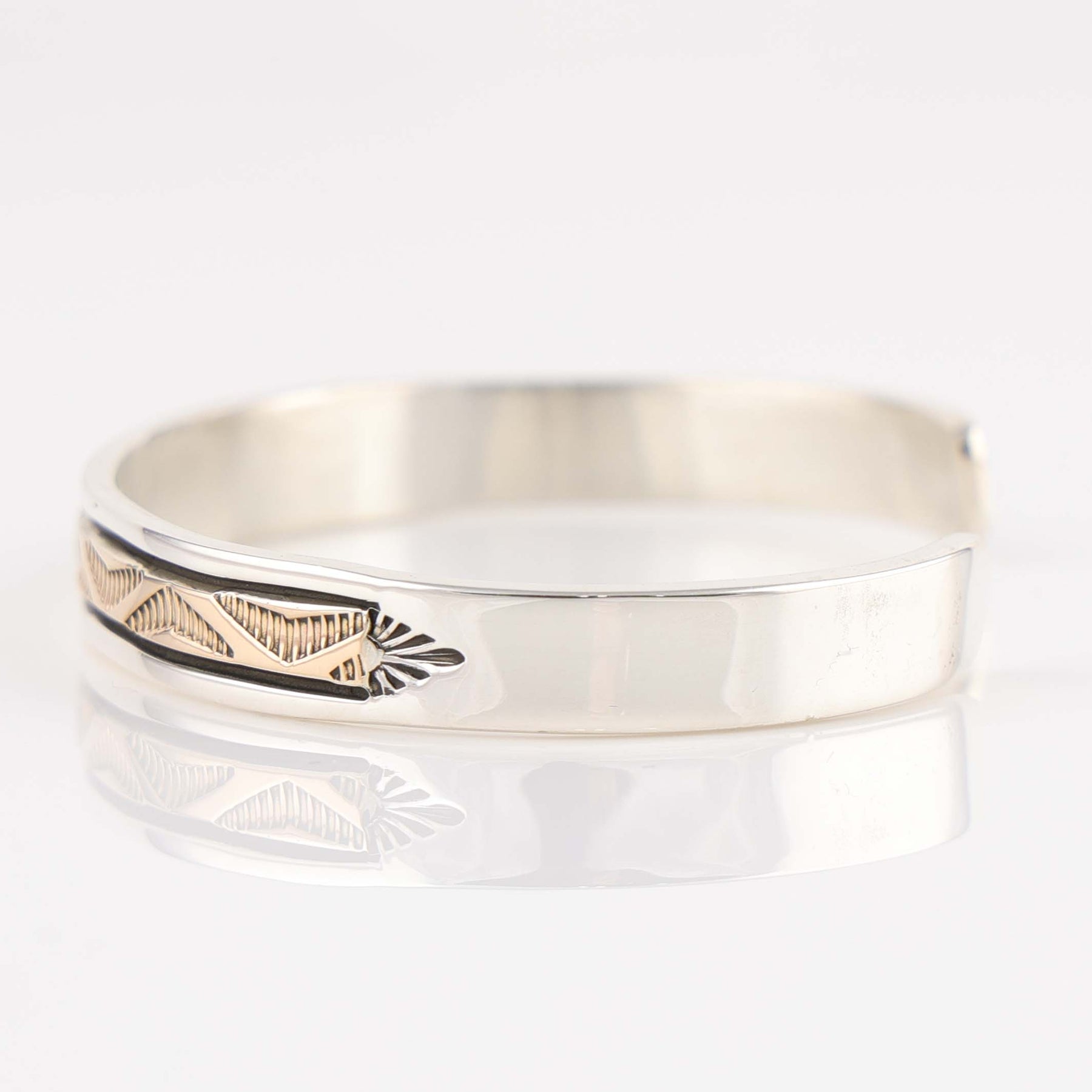 Sterling Silver Cuff and 14k Gold Cuff Bracelet with Hand-Stamped Designs.