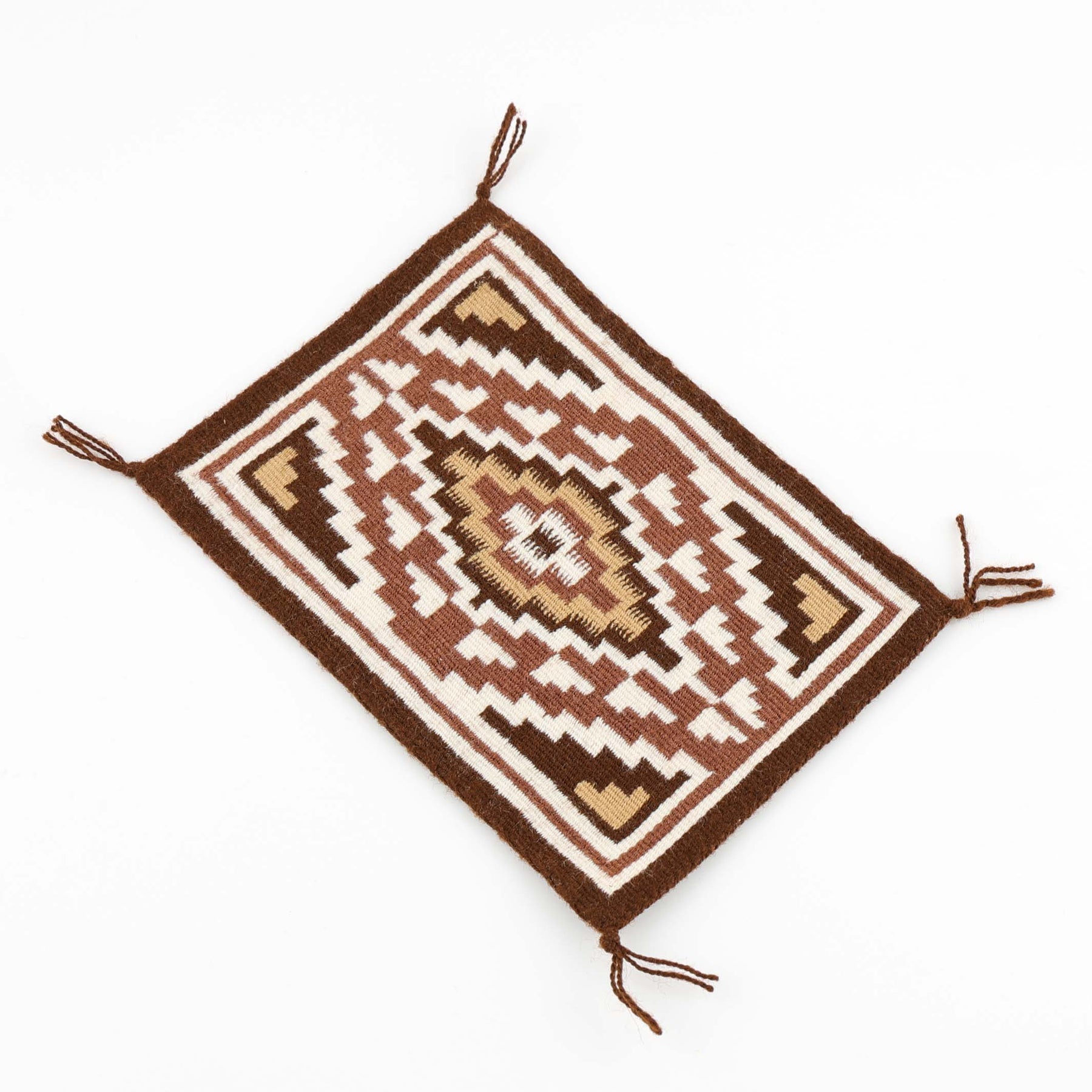 Fine Miniature Handwoven Navajo Weaving in the Two Grey Hills Regional Style, using Warm Brown Earth Tones.