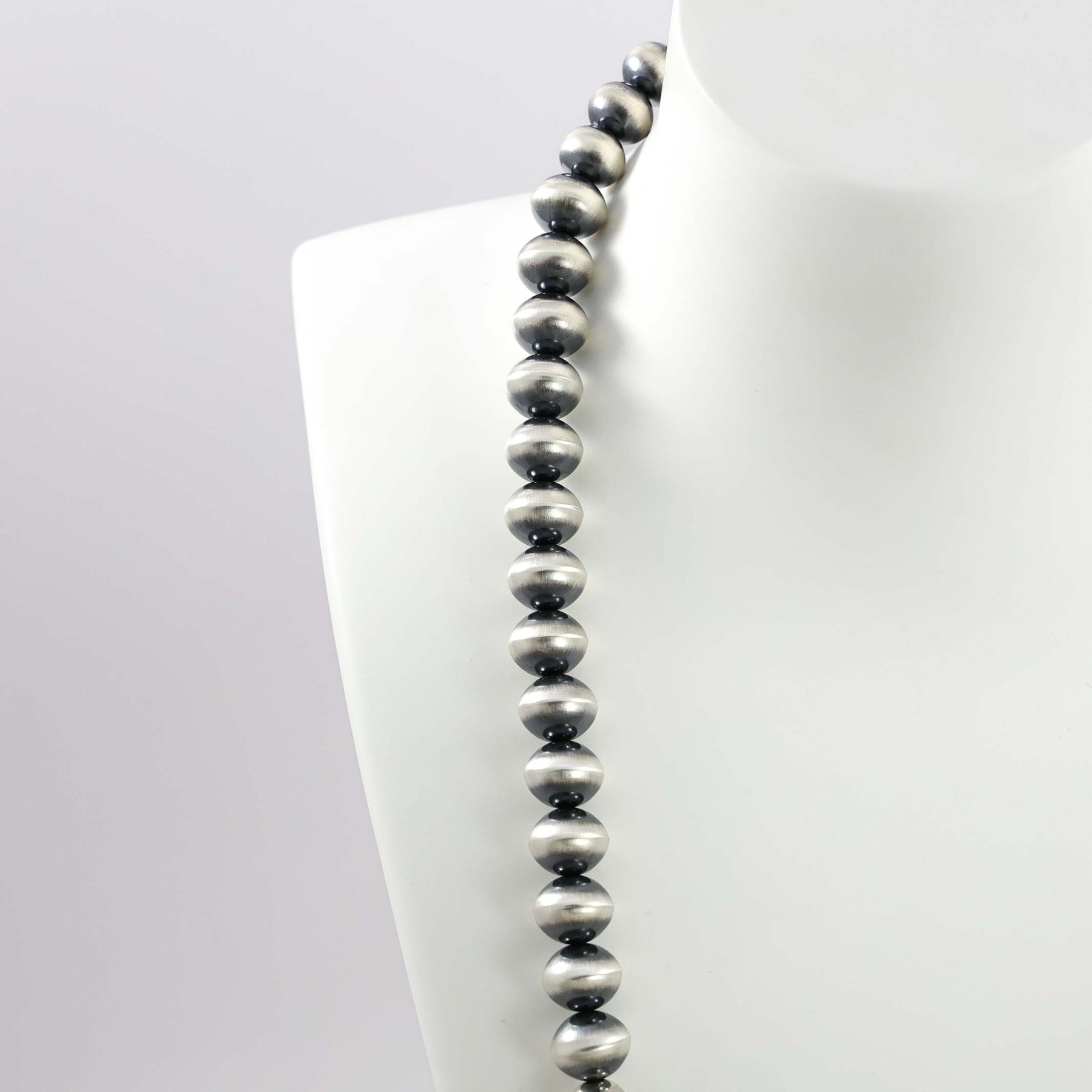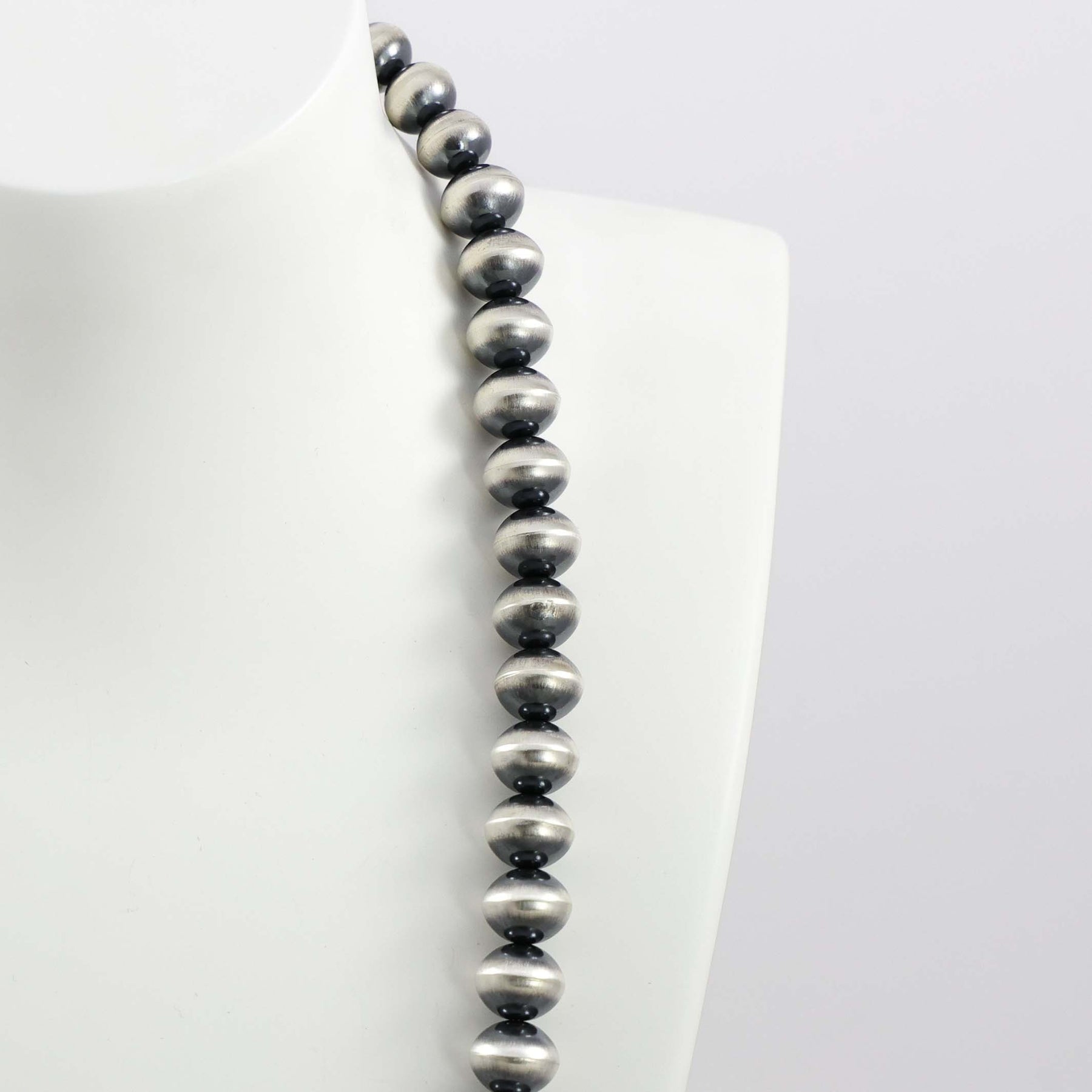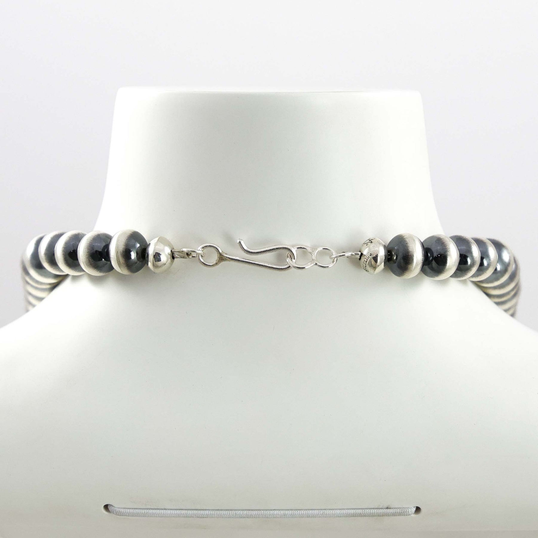 Sterling Silver Navajo Pearl Necklace with Alternating Handmade Beads in an Oxidized Finish.