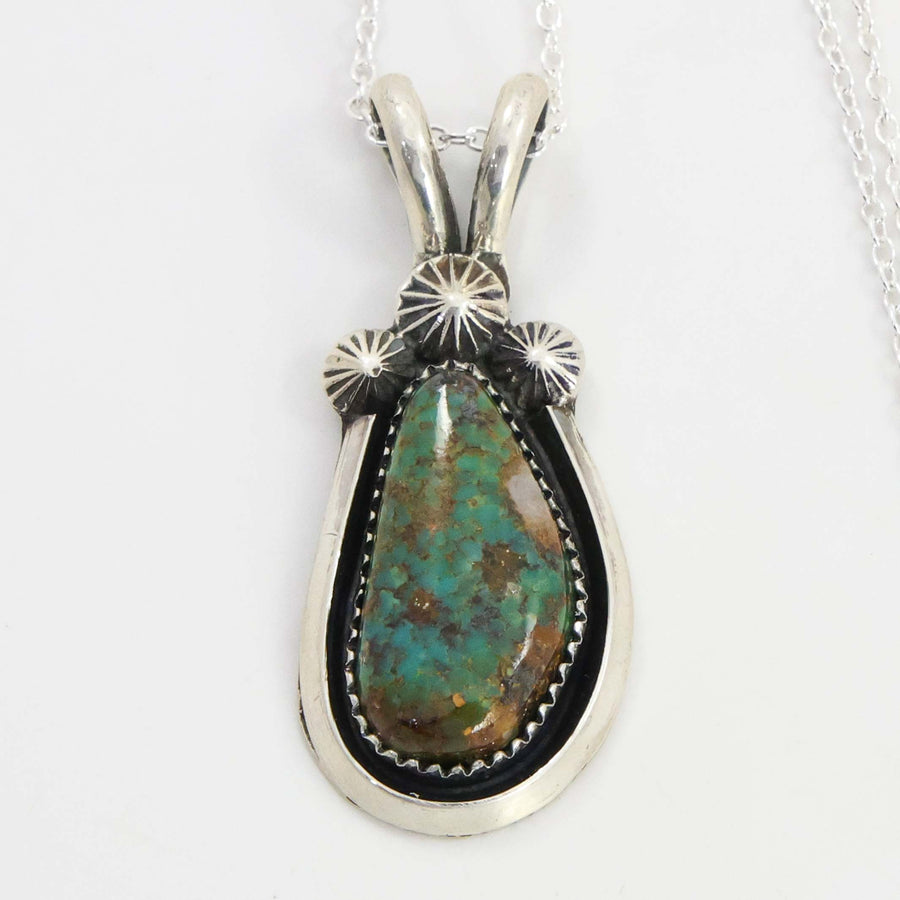 Sterling Silver Cuff Bracelet with Hand-Stamped Designs and set with Kingman Turquoise from Arizona.