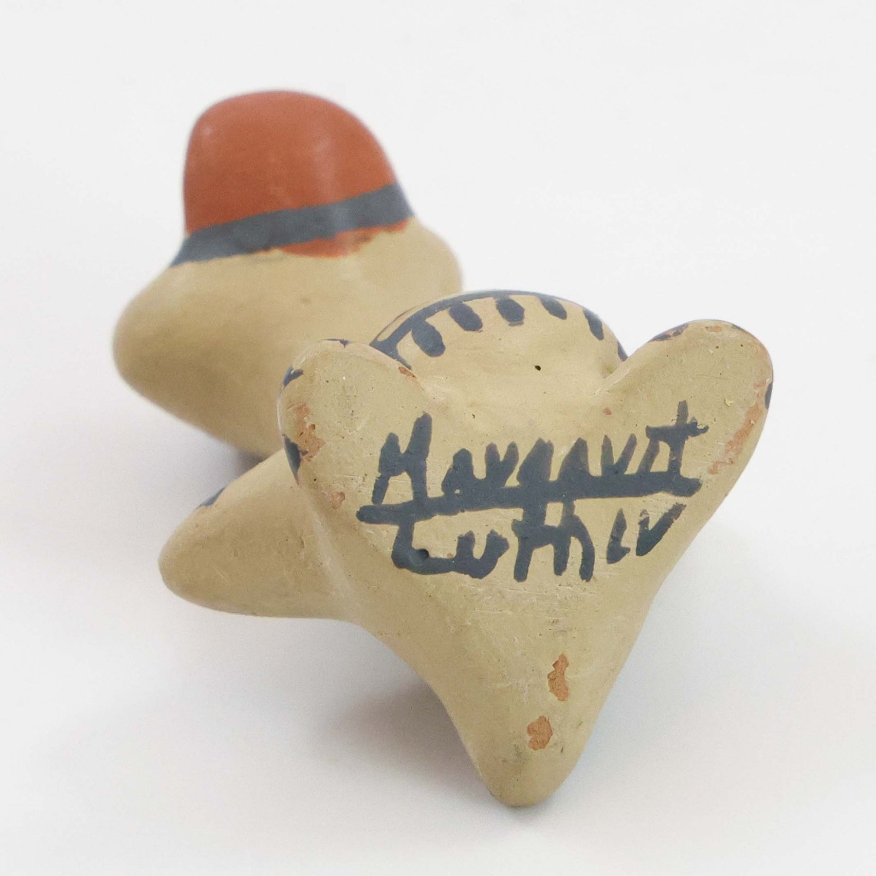 Miniature hand crafted pottery duck with hand painted designs. Made by Santa Clara bother and sister team, Margaret and Luther Gutierrez who learned from their parents Lela and Van Gutierrez.