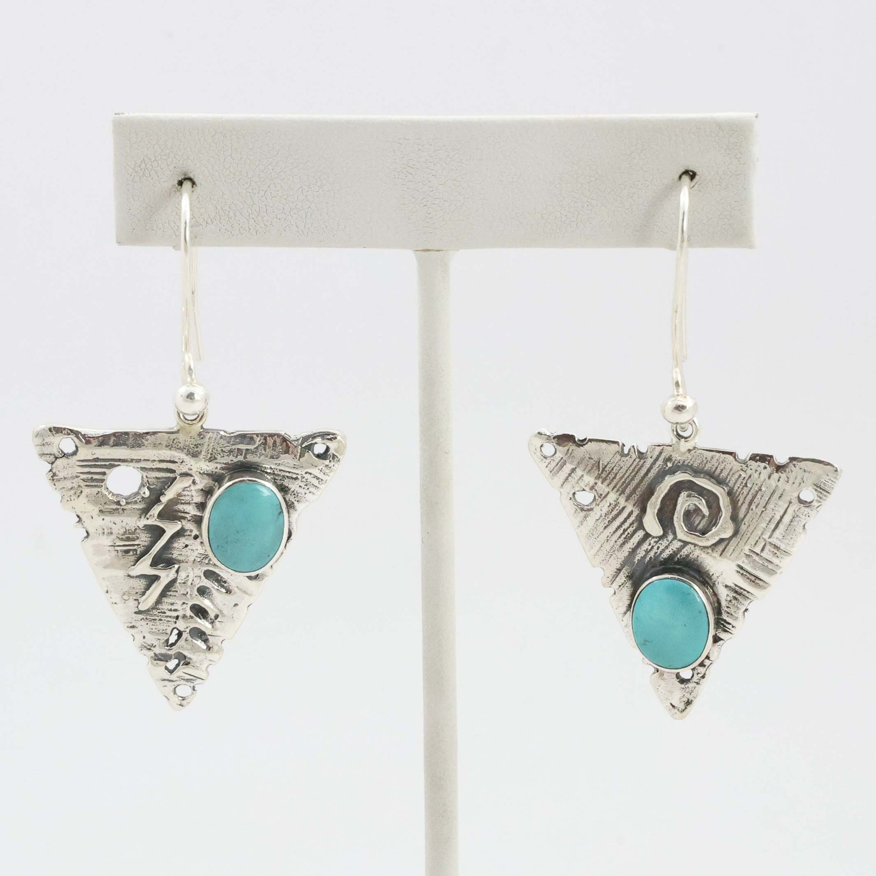 Sterling Silver French Hook Earrings with Lost Wax Cast Dangles set with Natural Sleeping Beauty Turquoise from Arizona.