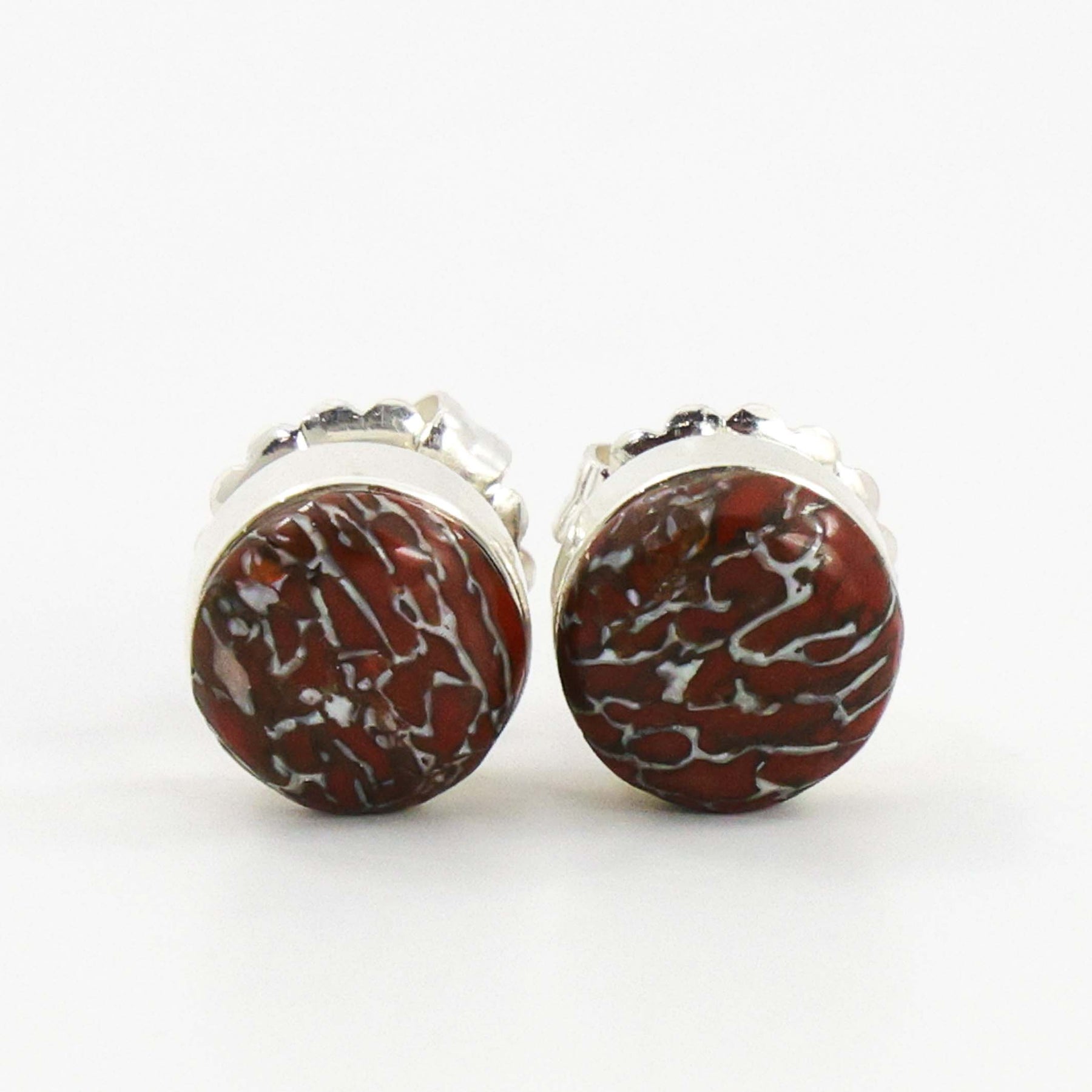 Sterling Silver Post Button Earrings set with Fossilized Dinosaur Bone.