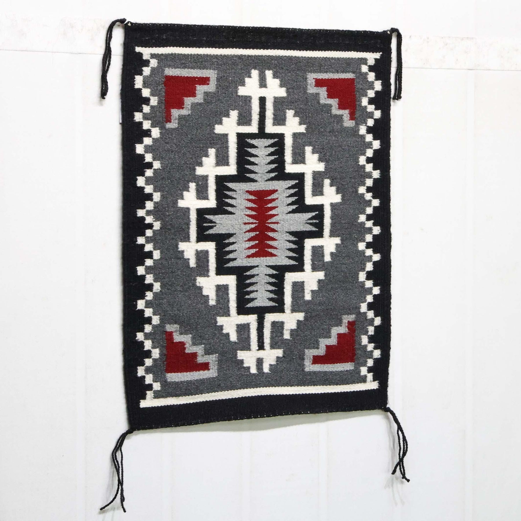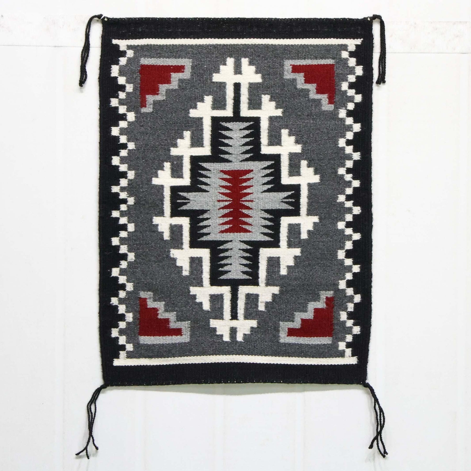 Handwoven Navajo Klagetoh Weaving with a Central Diamond Design and Red Accents.