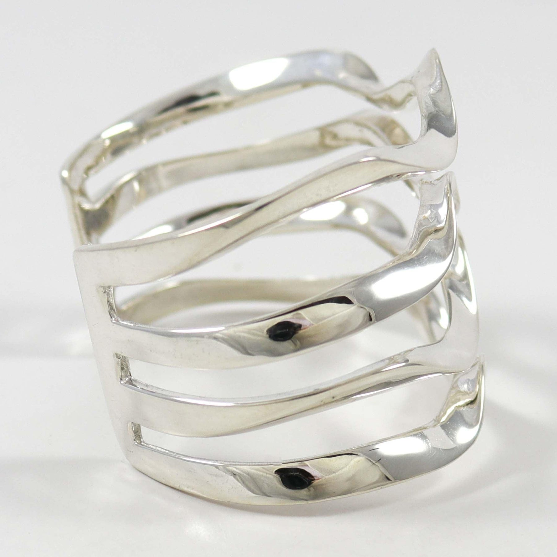Sterling Silver Wave Split Band Cuff Bracelet.