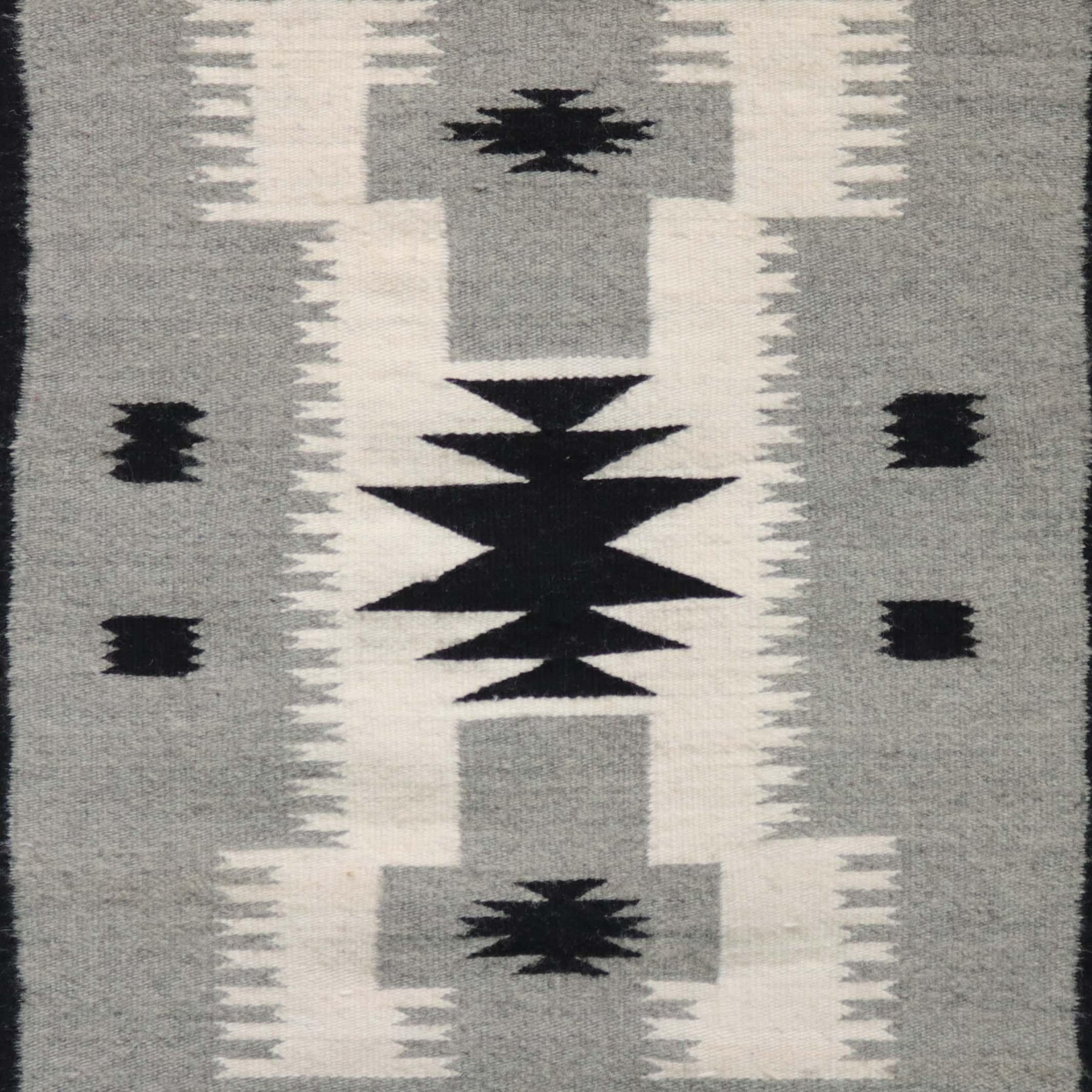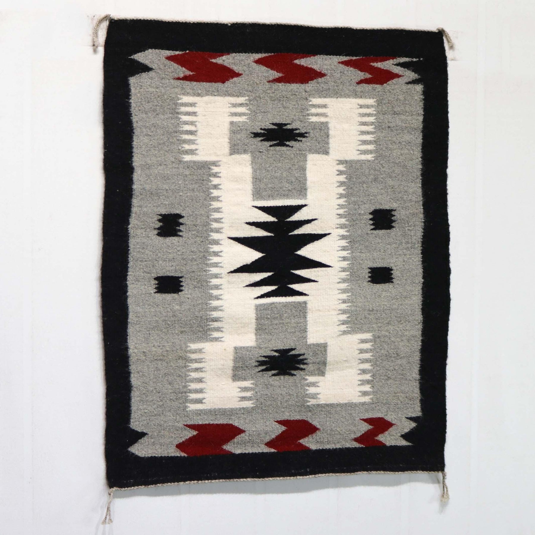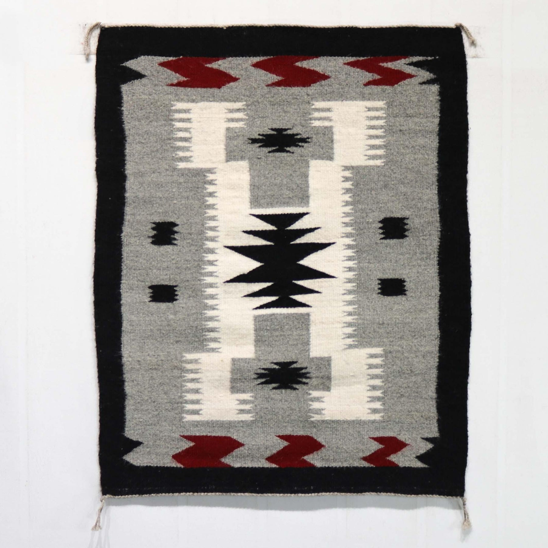 Navajo Weaving with White Storm Pattern Design Elements on a Gray Background.