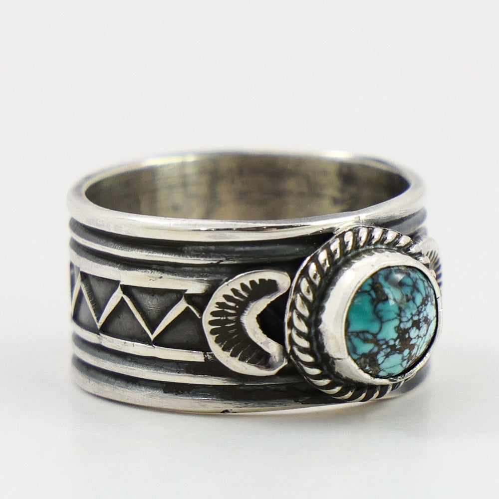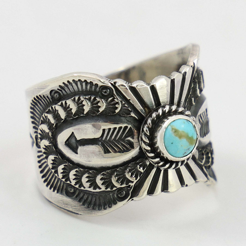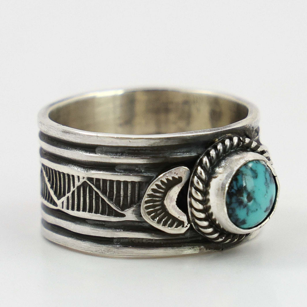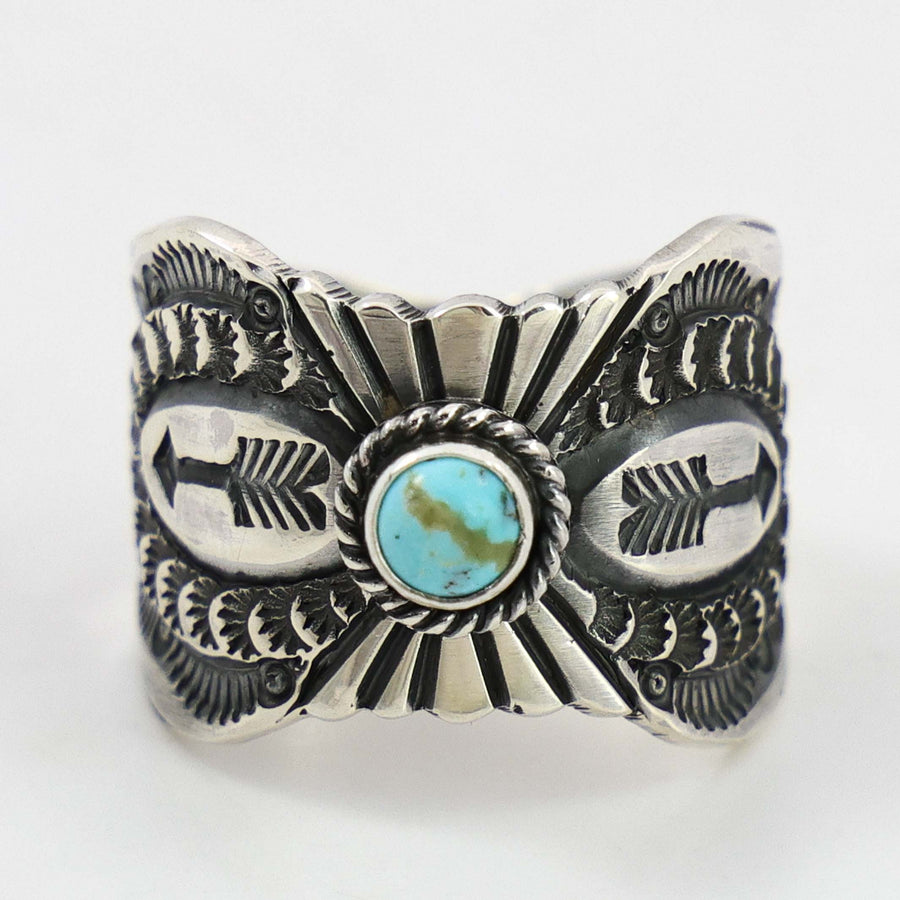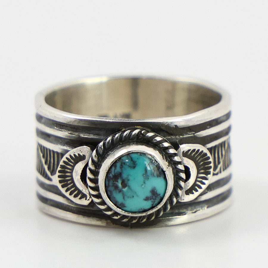 キングマン ターコイズ鉱山は、アリゾナ州キングマン近郊のセルバット山脈にあります。他の多くのターコイズ鉱山と同様に、この地域は 1800 年代後半にジェームズ ハースによって再発見されたときに、銅の採掘事業として始まりました。キングマン ターコイズは 1950 年代から 1970 年代にかけて人気を博し、その鮮やかなブルーはアメリカン ターコイズの典型的な外観になりました。キングマンにはさまざまな青緑色の色合いがありますが、ハイグレードのキングマン ターコイズは、タイトで暗いクモの巣のマトリックスと黄鉄鉱のタッチを伴う深い青色の色合いで知られています。キングマン鉱山は現在も操業を続けており、美しいターコイズを大量に産出し続けています。実際、キングマン鉱山は南西部の他のすべての鉱山を合わせたよりも多くのターコイズを生産していると主張する人もいます。キングマン地域には、