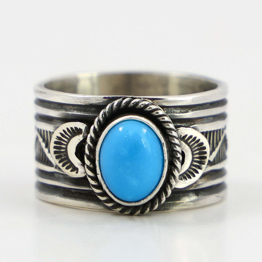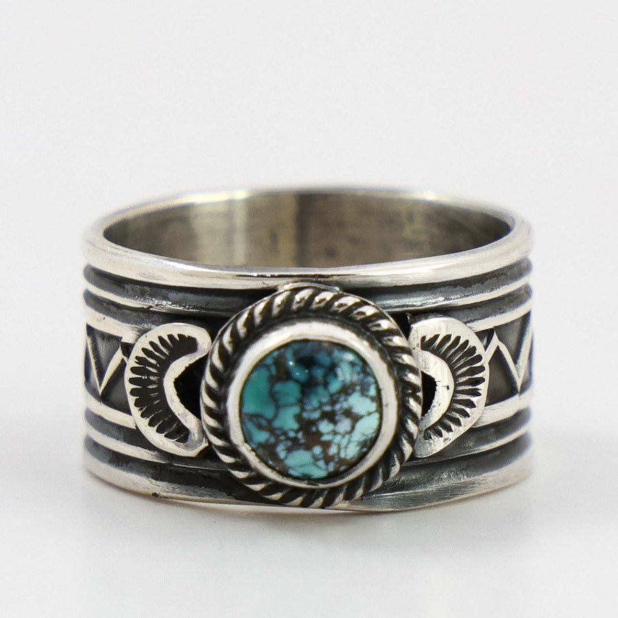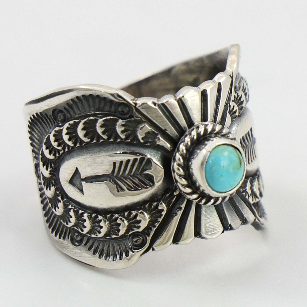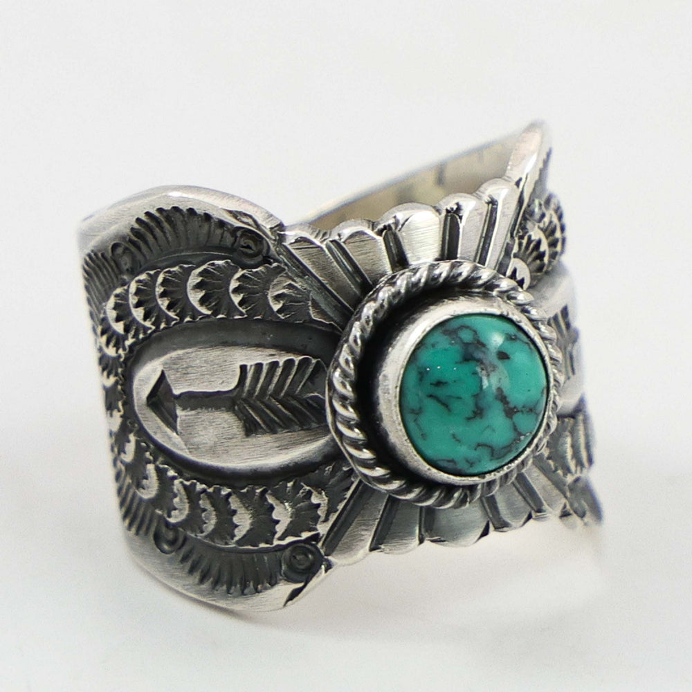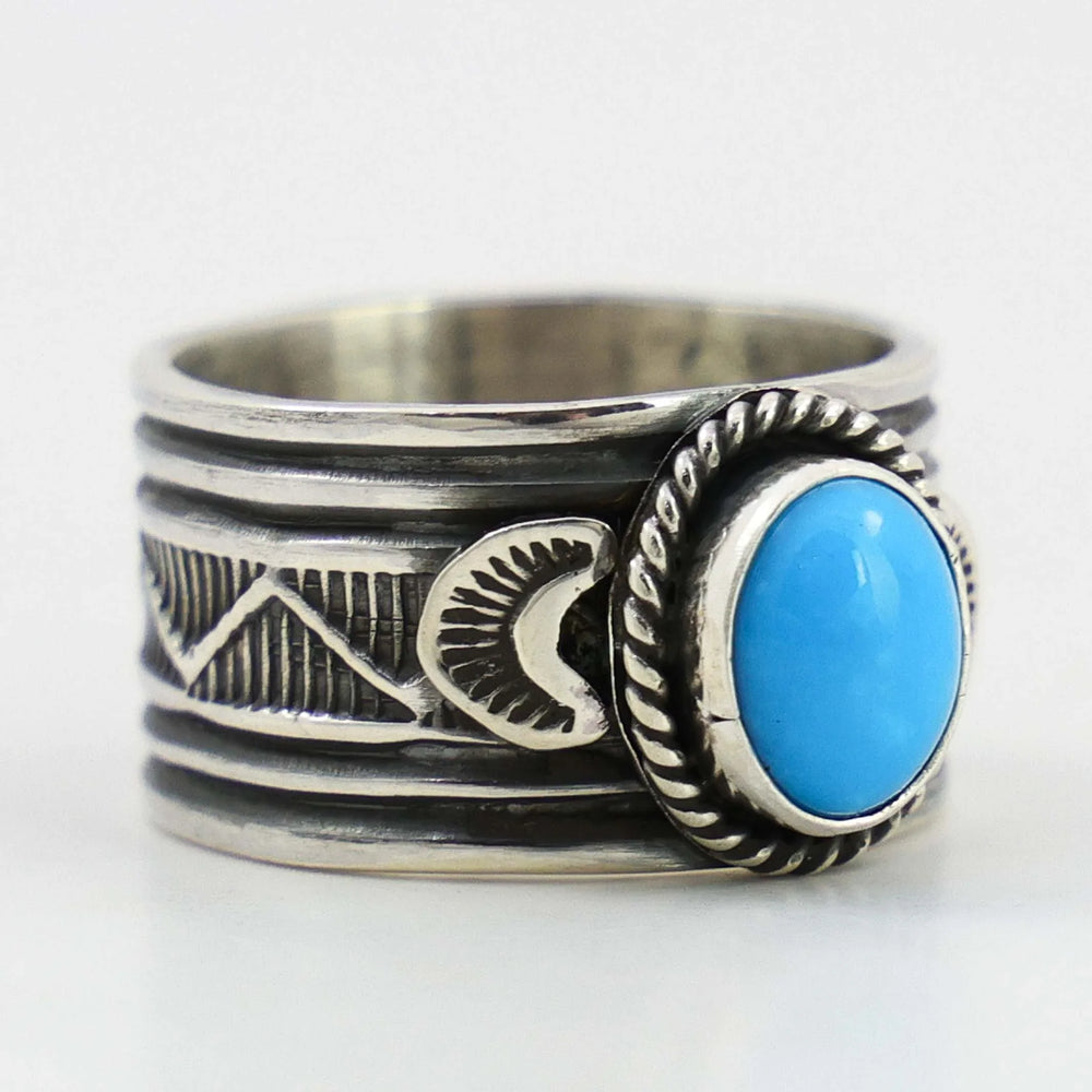 キングマン ターコイズ鉱山は、アリゾナ州キングマン近郊のセルバット山脈にあります。他の多くのターコイズ鉱山と同様に、この地域は 1800 年代後半にジェームズ ハースによって再発見されたときに、銅の採掘事業として始まりました。キングマン ターコイズは 1950 年代から 1970 年代にかけて人気を博し、その鮮やかなブルーはアメリカン ターコイズの典型的な外観になりました。キングマンにはさまざまな青緑色の色合いがありますが、ハイグレードのキングマン ターコイズは、タイトで暗いクモの巣のマトリックスと黄鉄鉱のタッチを伴う深い青色の色合いで知られています。キングマン鉱山は現在も操業を続けており、美しいターコイズを大量に産出し続けています。実際、キングマン鉱山は南西部の他のすべての鉱山を合わせたよりも多くのターコイズを生産していると主張する人もいます。キングマン地域には、